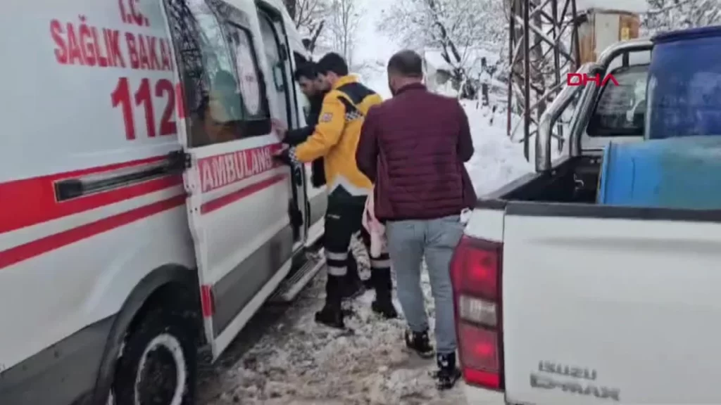 Kardan kapanan yolda hastaneye kaldırılan bebek