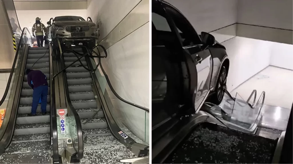 Otomobil camı kırıp alışveriş merkezine girdi, yürüyen merdivende asılı kaldı: 1’i ağır 3 yaralı