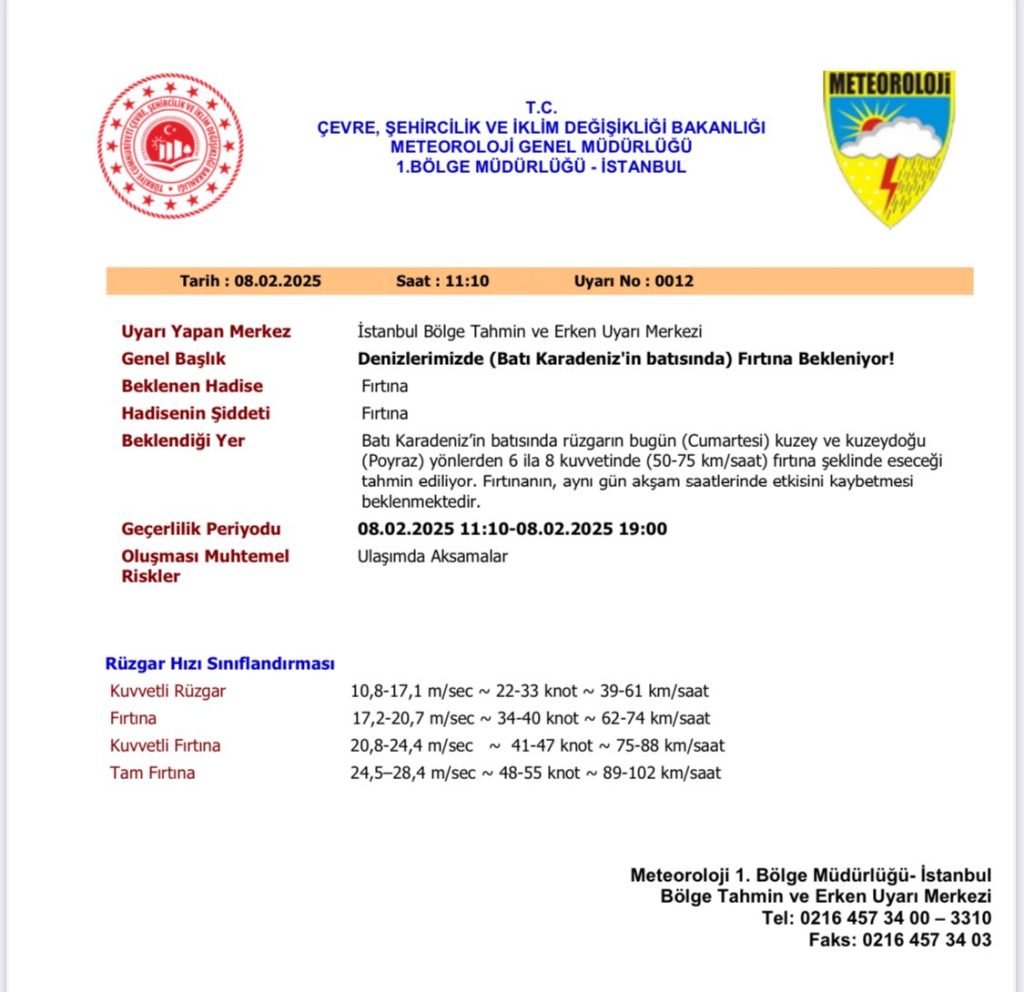 Önemli Uyarı: Fırtınanın, 9 Şubat 2025 sabah saatlerinden itibaren etkisini göstermeye başlaması ve gece saatlerine kadar devam etmesi bekleniyor.