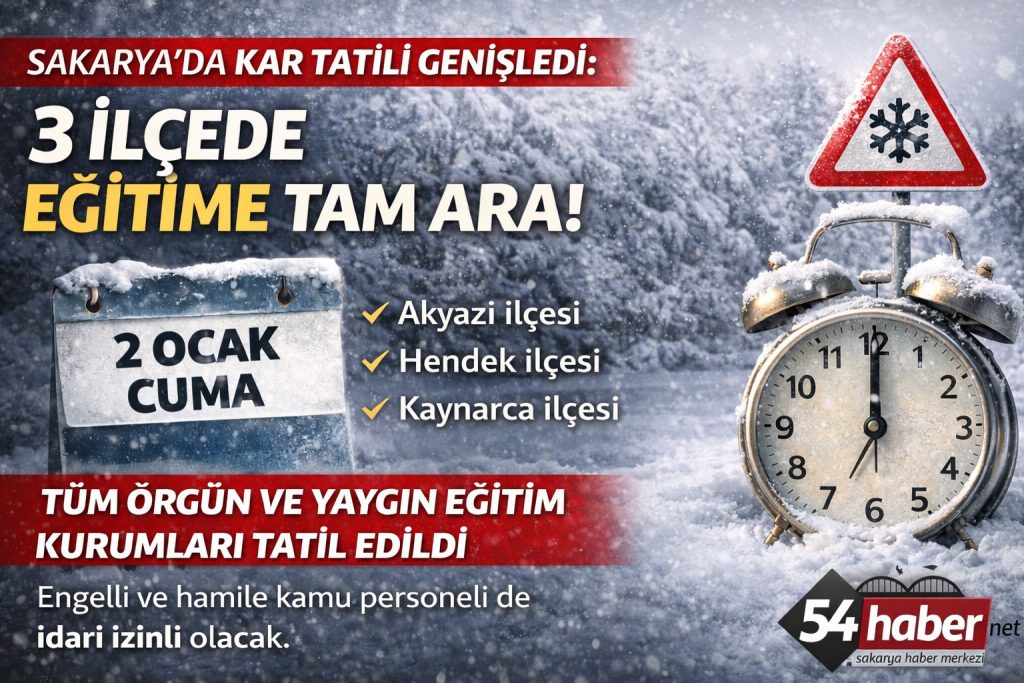 Sakarya Valiliği, dondurucu soğuk ve kar yağışının yaşamı olumsuz etkilediği ilçelerde eğitim-öğretim faaliyetlerine dair yeni bir genelge yayımladı. İlk etapta sadece taşımalı eğitimi kapsayan karar, hava şartlarının ağırlaşması üzerine Akyazı, Hendek ve Kaynarca ilçelerinin tamamını kapsayacak şekilde genişletildi.