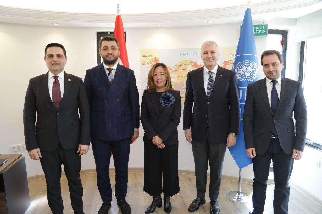 Sakarya Ticaret ve Sanayi Odası Yönetim Kurulu Başkanı A. Akgün Altuğ, Yönetim Kurulu Başkan Yardımcısı Gökhan Tiryaki ve Genel Sekreter Şevket Kırıcı; Birleşmiş Milletler Kalkınma Programı (UNDP) Türkiye Mukim Temsilcisi Monica Merino Dominguez’i Ankara’daki makamında ziyaret etti.