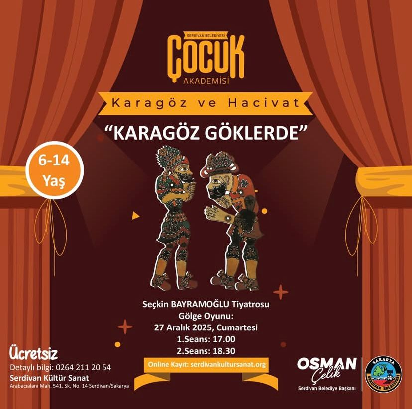 Serdivan Belediyesi, çocuklara yönelik kültür ve sanat çalışmalarına bir yenisini daha ekliyor. Serdivan Çocuk Akademisi kapsamında hazırlanan etkinlikte, Türk gölge tiyatrosunun simge karakterleri Karagöz ve Hacivat sahneye taşınıyor.