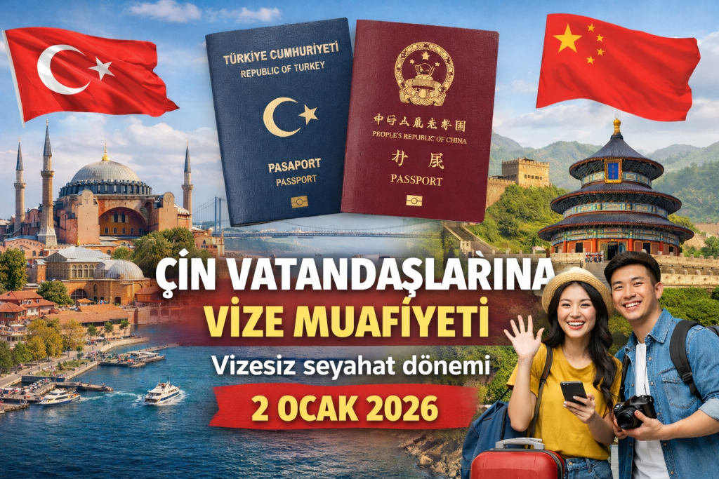 Türkiye, Çin Halk Cumhuriyeti vatandaşları için vize uygulamasını kaldırma kararı aldı. Dışişleri Bakanlığı tarafından duyurulan düzenlemeye göre, Çin pasaportu taşıyan ziyaretçiler 2 Ocak 2026 tarihinden itibaren Türkiye’ye yapacakları turistik ve kısa süreli seyahatlerde vize alma zorunluluğundan muaf olacak.
